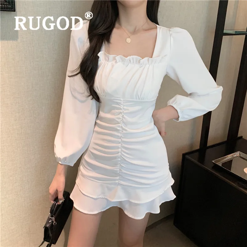RUGOD Весна Simplee рюшами Ретро корейское мини облегающее платье сплошной полный рукав Топ для женщин повседневные женские платья сексуальные топы