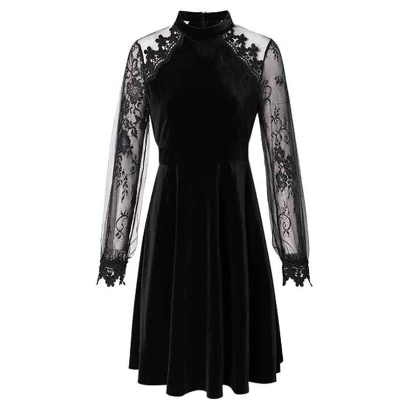 Весна 2020, модные женские мини платья, элегантные велюровые кружевные женские платья с вышивкой и длинным рукавом, Сексуальные клубные плать...
