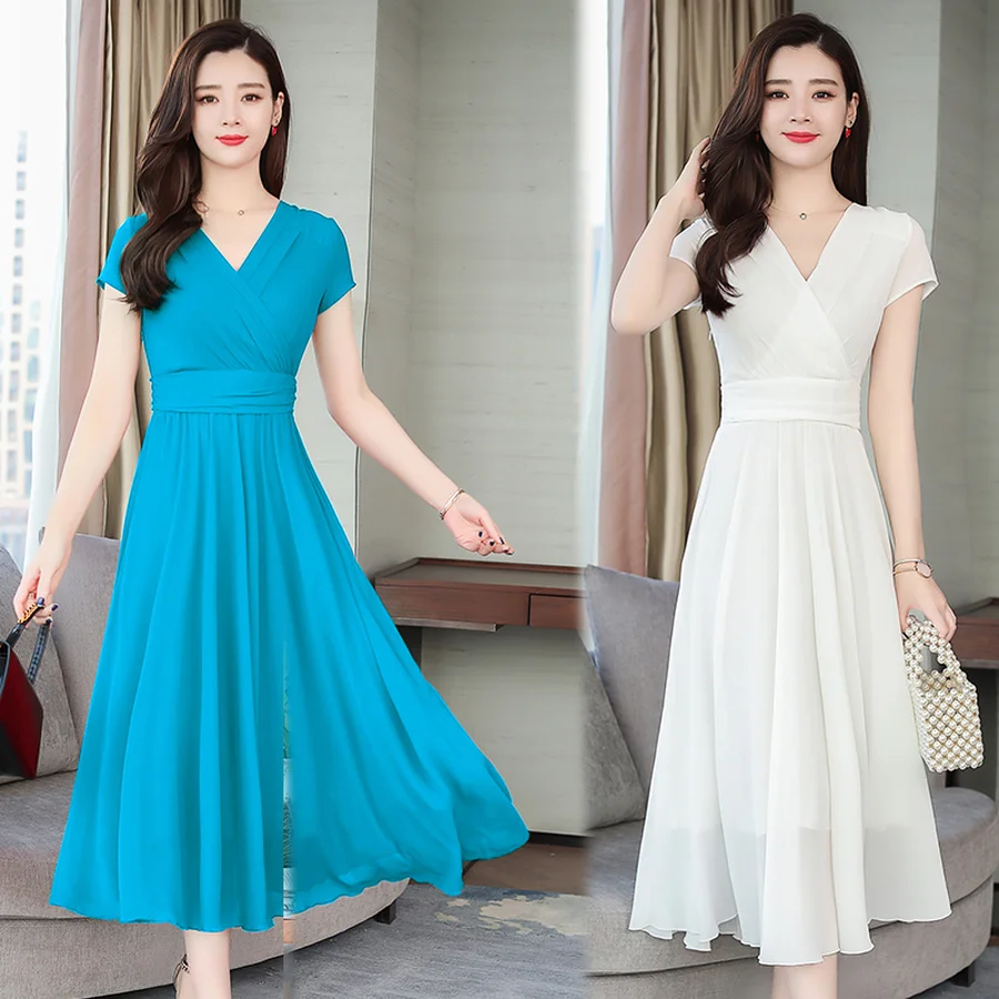 2019 элегантные однотонные шифоновые богемные миди платья летние новые винтажные 4XL Большие размеры пляжные макси сарафаны женские облегающ...