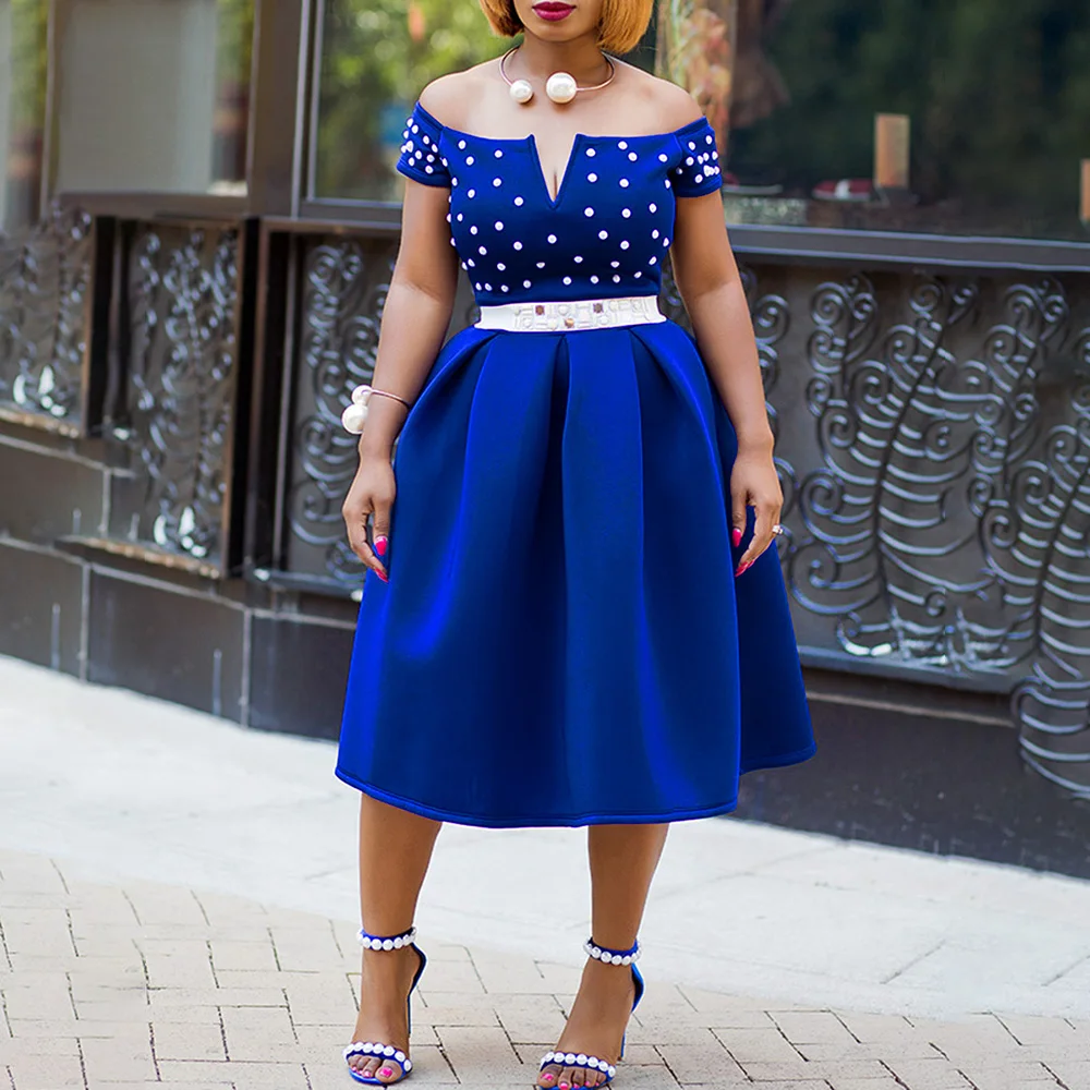 Пикантные Клубные вечерние элегантные Hipster OL Леди Уличная для женщин платья для синий плюс размеры с открытыми плечами Бисер женская мода