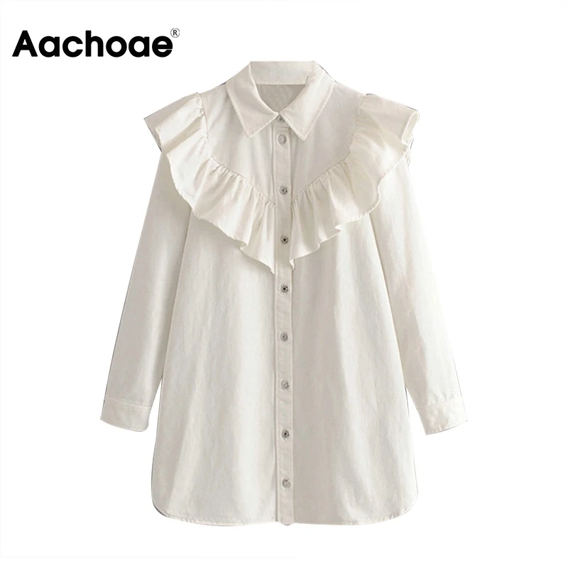 Модное мини-платье с оборками, женское платье с длинным рукавом, высокая уличная мода, белое платье, женское платье с отложным воротником, стильное платье-рубашка для женщин