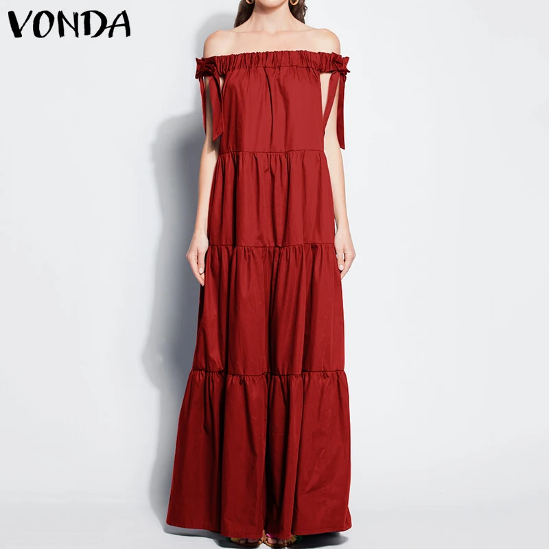 VONDA богемное Платье женское сексуальное с открытыми плечами многослойное Макси длинное платье 2019 летнее платье винтажное без рукавов Vestido Плюс Размер