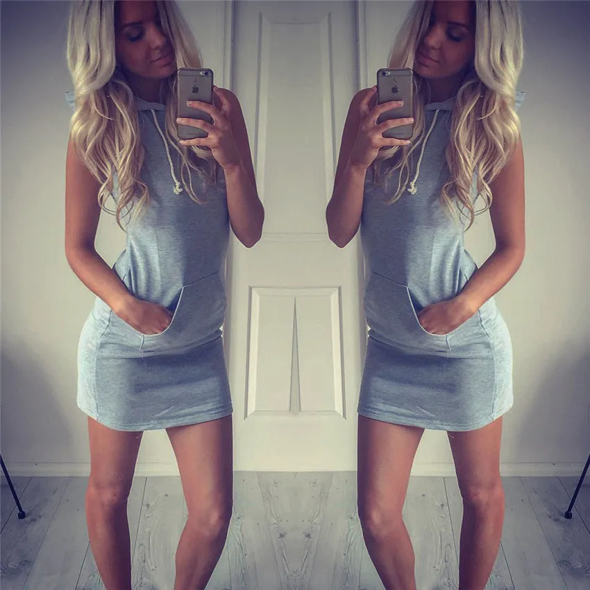 Летнее женское тонкое Спортивное платье с капюшоном 2019 пуловер мини платья Повседневное пляжное короткое платье с карманами Бандажное пла...