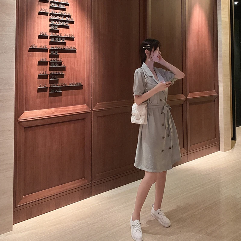 2019 женское летнее винтажное платье во французском стиле тонкое окольцованная талия на пуговицах спереди с v-образным вырезом льняное Ретро ...