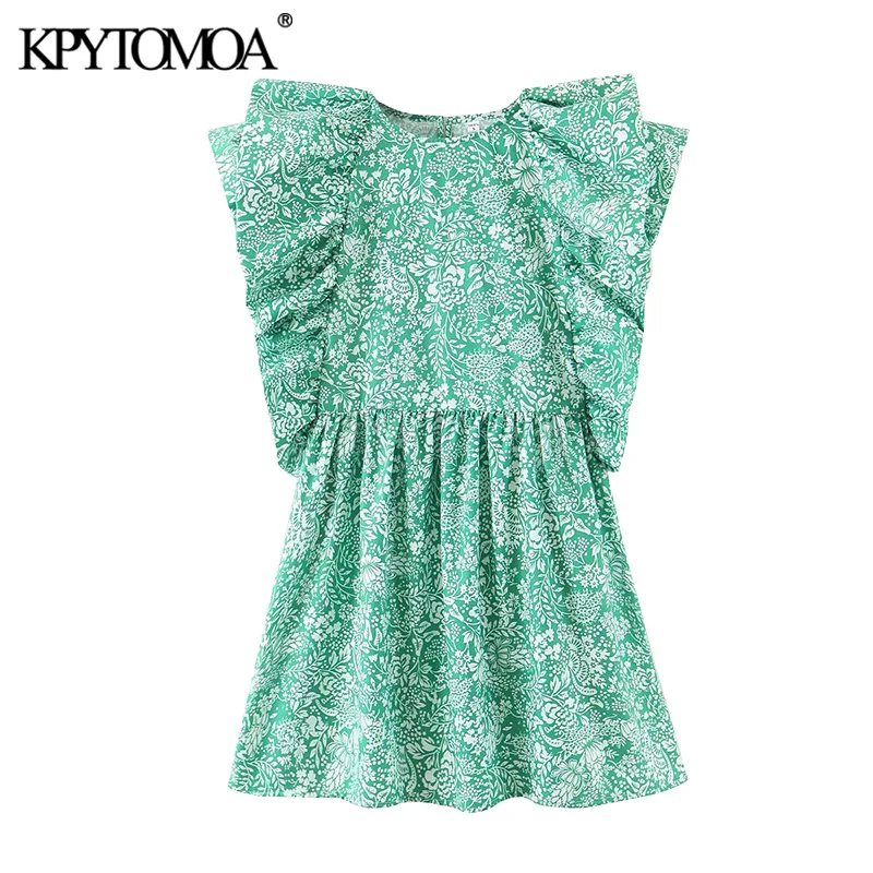 Женское винтажное мини-платье KPYTOMOA, винтажное платье с круглым вырезом и коротким рукавом, с цветочным принтом, 2020