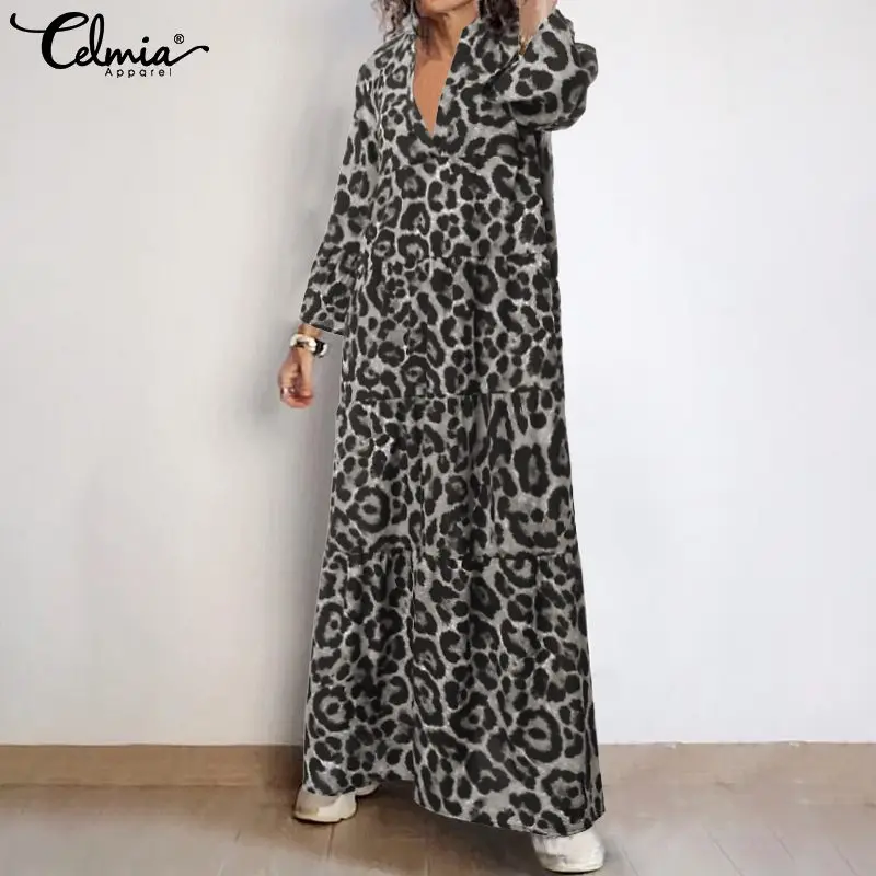 Женское сексуальное леопардовое платье с леопардовым принтом, модель 2019 года, Осеннее свободное платье с расклешенными рукавами, v-образный...