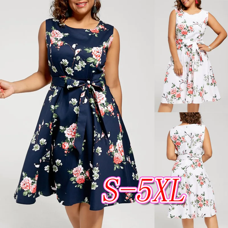 Женское платье, летнее, с принтом, ТРАПЕЦИЕВИДНОЕ, с поясом, макси, Пляжное платье, с бантом, бохо, с круглым вырезом, до колена, платье, Vestidos, п...