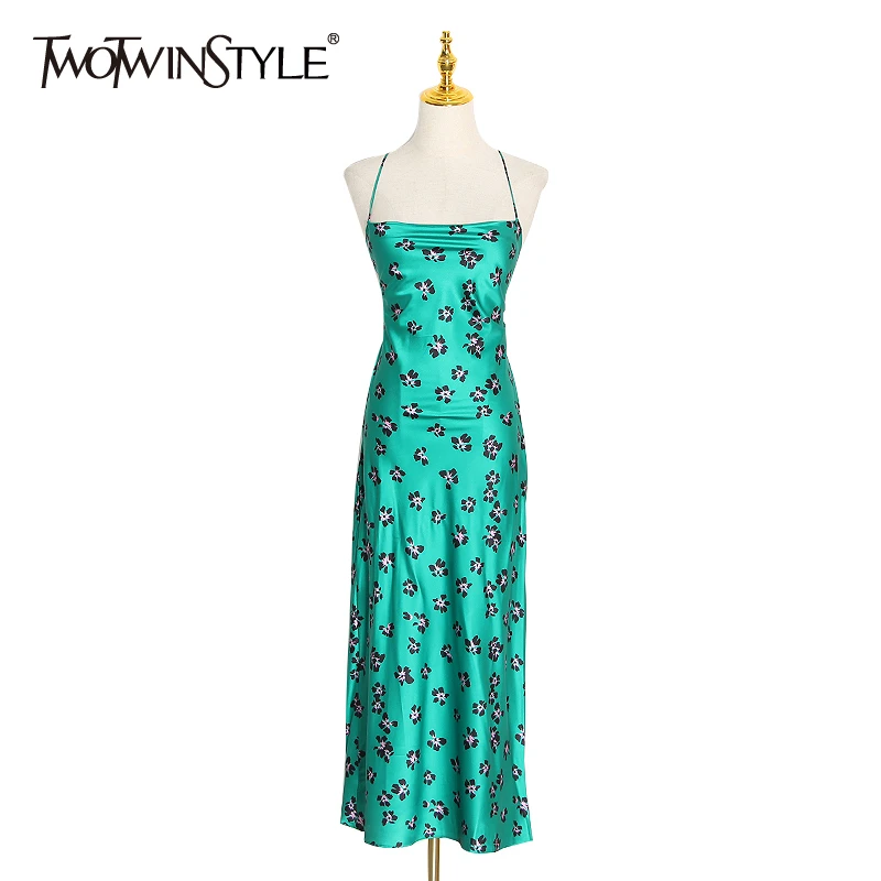 TWOTWINSTYLE платье в горошек с принтом для женщин Спагетти ремень без бретелек без рукавов Высокая талия платья для женщин 2020 Весенняя мода