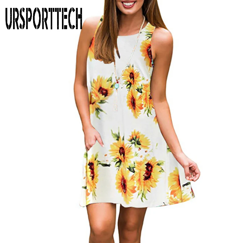 Женское платье с цветочным принтом, повседневное мини-платье без рукавов большого размера 3XL для лета 2020