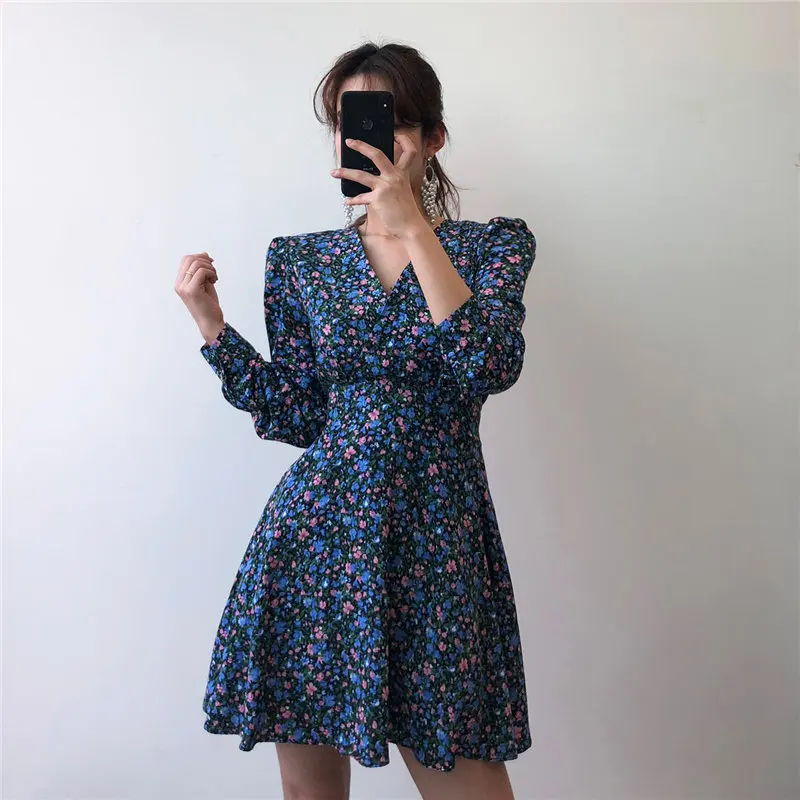 Женское платье с цветочным принтом, повседневное платье мини с длинным рукавом для вечеринок, большие размеры, весна-лето 2020