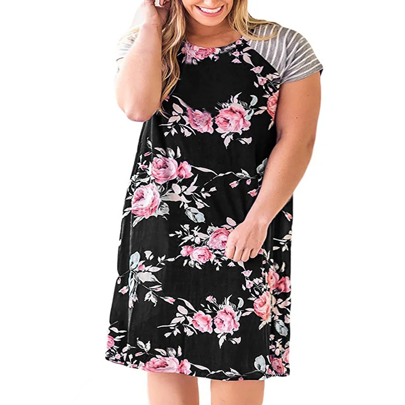 Большие размеры 9XL, женское платье для полных мам 2019, летнее свободное платье в полоску с цветочным принтом, большие размеры, женская одежда, ...