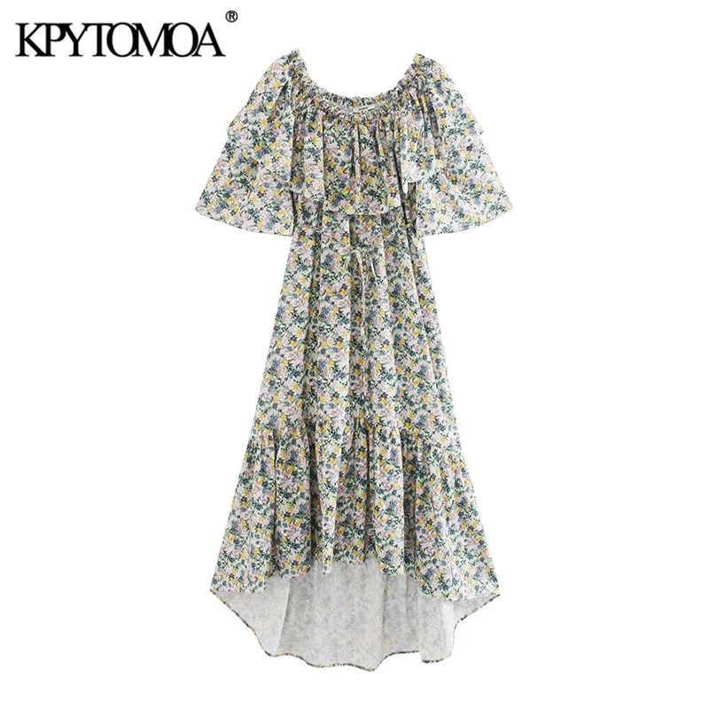 KPYTOMOA женское 2020 шикарное модное винтажное платье с цветочным принтом и оборками-миди с круглым вырезом и коротким рукавом, необычные женские платья Vestidos