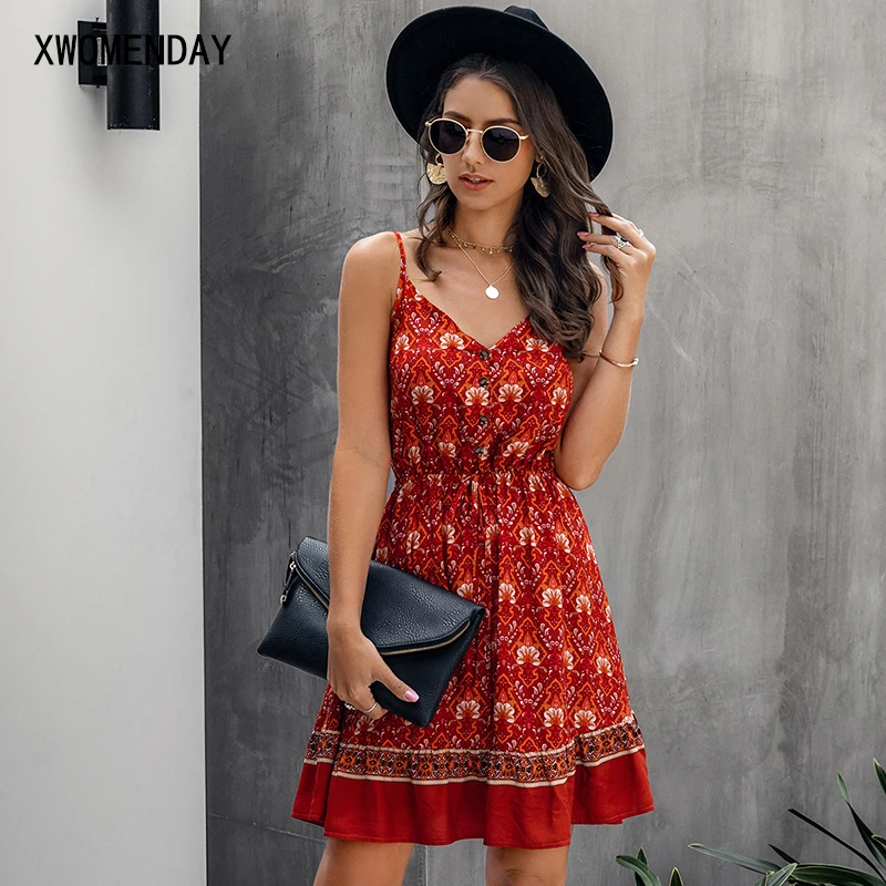 2019 сексуальное платье с глубоким v-образным вырезом, летнее платье Для женщин богемский Цветочный принт мини вечерние платье элегантное пла...