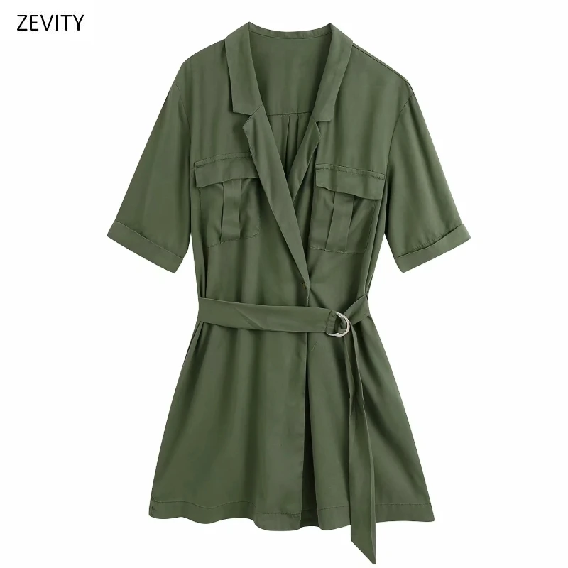 Женское повседневное мини-платье Zevity, Повседневное платье с накладными карманами и эластичным поясом в стиле safari, DS3968