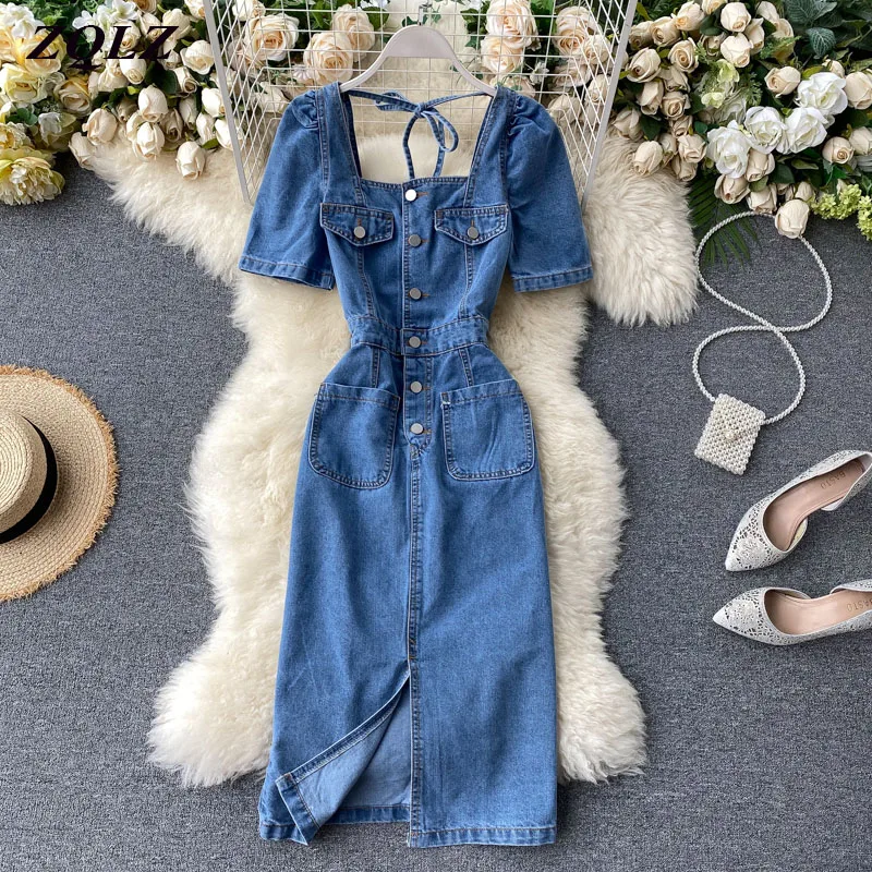 Женское платье из джинсовой ткани ZQLZ, повседневное облегающее винтажное платье для вечеринки на лето 2020