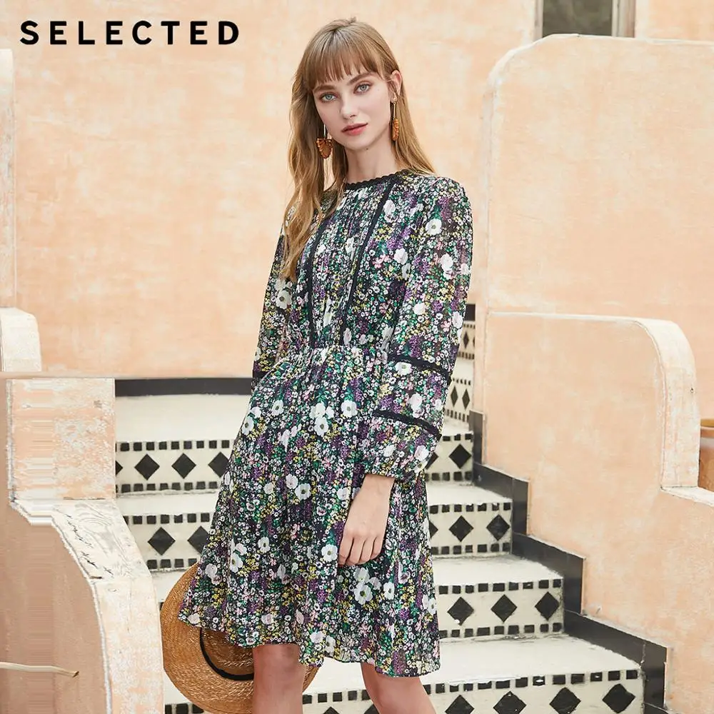 Приталенное плиссированное платье миди с цветочным кружевом S | 41912J506