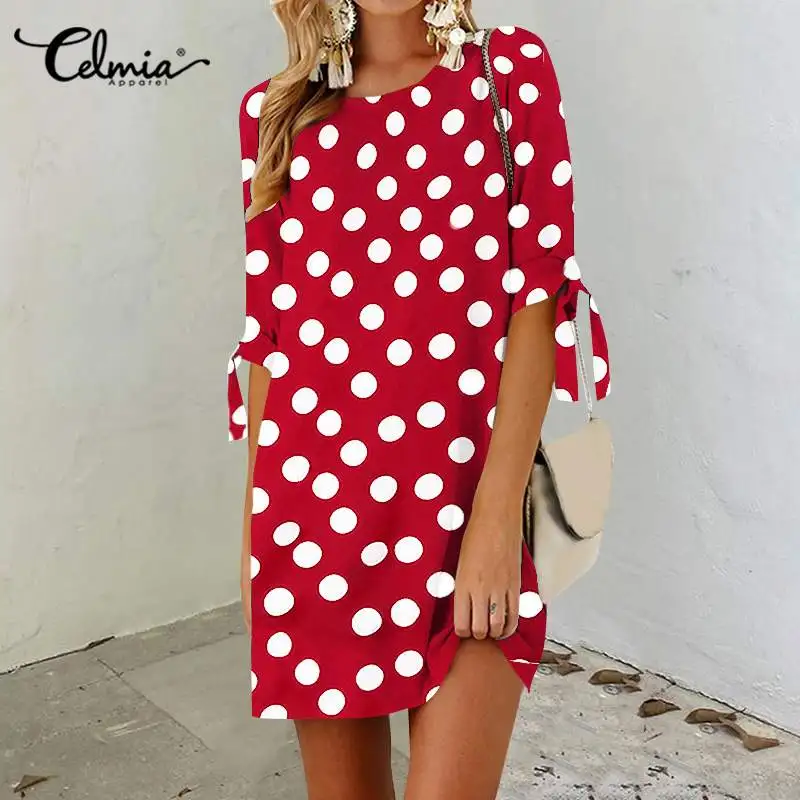Летнее платье в богемном стиле с узором в горошек, женское платье с коротким рукавом, повседневные свободные вечерние пляжные мини-платья, большие размеры, 7