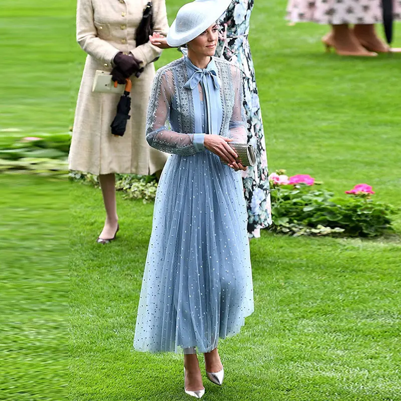 Элегантные темпераментные вечерние платья для банкета женские небесно-голубые сетчатые Лоскутные кружевные платья с длинными рукавами платье с вышивкой в горошек