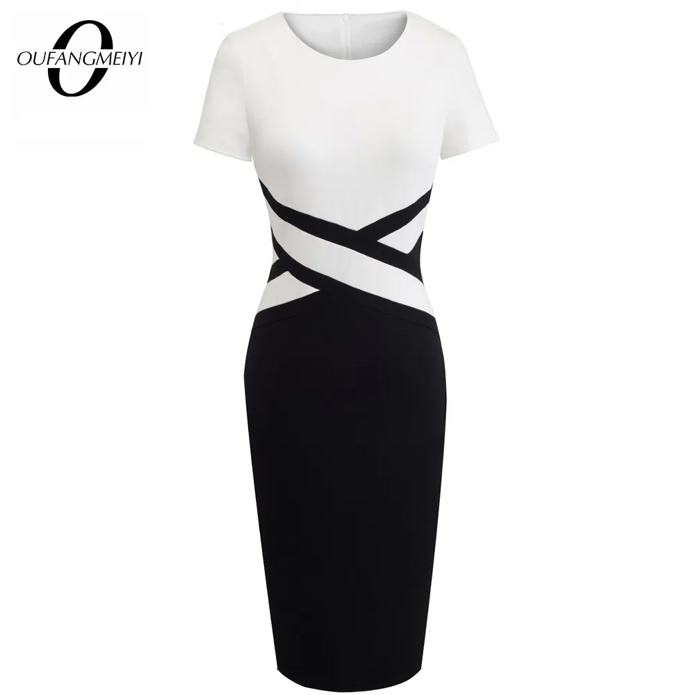 Женское лоскутное контрастное осеннее повседневное деловое офисное платье для работы элегантное облегающее платье с рукавом три четверти ...