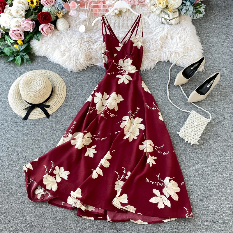 Бохо, v-образный вырез, 2020, цветочный принт, тонкое, сексуальное, на бретельках, макси, длинное платье, шифон, летнее, повседневное, для вечерин...