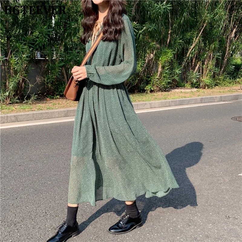 Женское платье в горошек BGTEEVER, винтажное длинное платье с эластичной резинкой на талии, весна-лето 2020