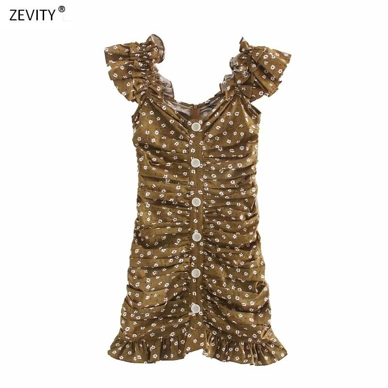 Модные женские плиссированные мини-платья с рукавами-бабочками и пуговицами на молнии сзади, с оборками, DS3545, 2020