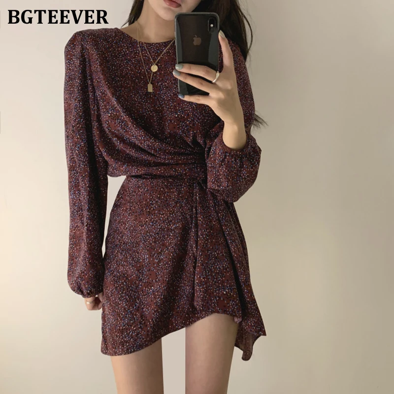 BGTEEVER, женское платье с круглым вырезом, в горошек, с неровным подолом, модное, шикарное, вечерние, с длинным рукавом, тонкое, на шнуровке, женское платье, весна 2020