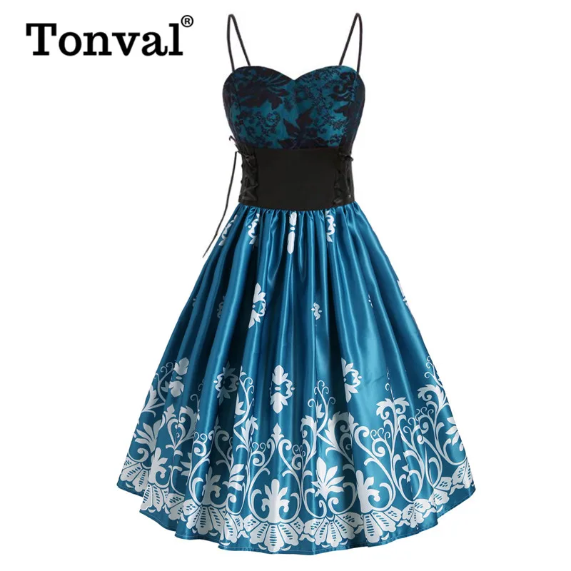 Tonval, на шнуровке, высокая талия, 50 S, винтажное, цветочное, элегантное, вечерние, Pinup платье, женское, кружевное, накладное, летнее, Cami, плиссиро...