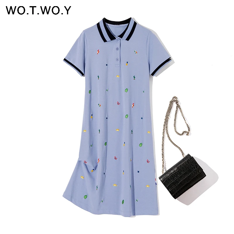WOTWOY 2020 весеннее Хлопковое платье поло с вышитым рисунком для женщин, большие размеры, черные повседневные Прямые Платья До Колена, женские розовые