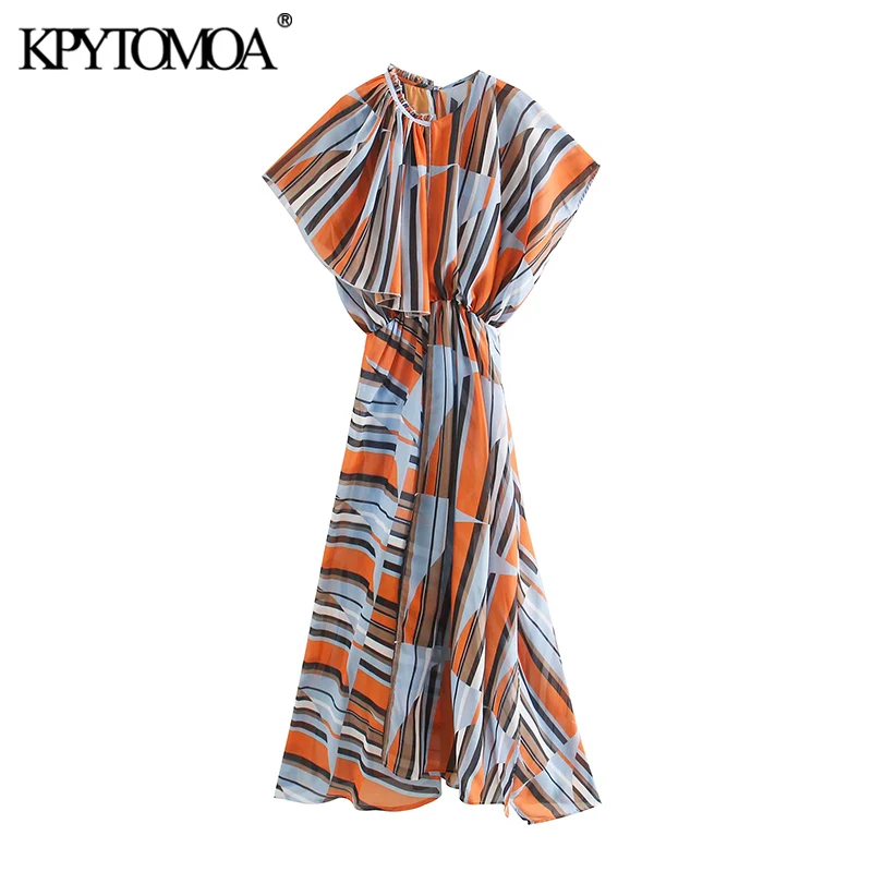 Женское шифоновое платье в полоску KPYTOMOA, винтажное Асимметричное Платье макси с эластичной резинкой на талии, модель 2020