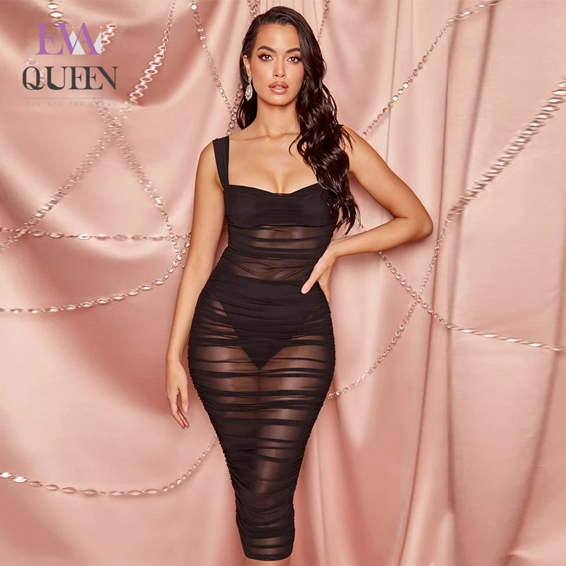 EvaQueen 2020 летнее Сетчатое сексуальное платье миди женское элегантное Клубное платье с открытыми плечами с открытой спиной на молнии с высокой талией женское платье