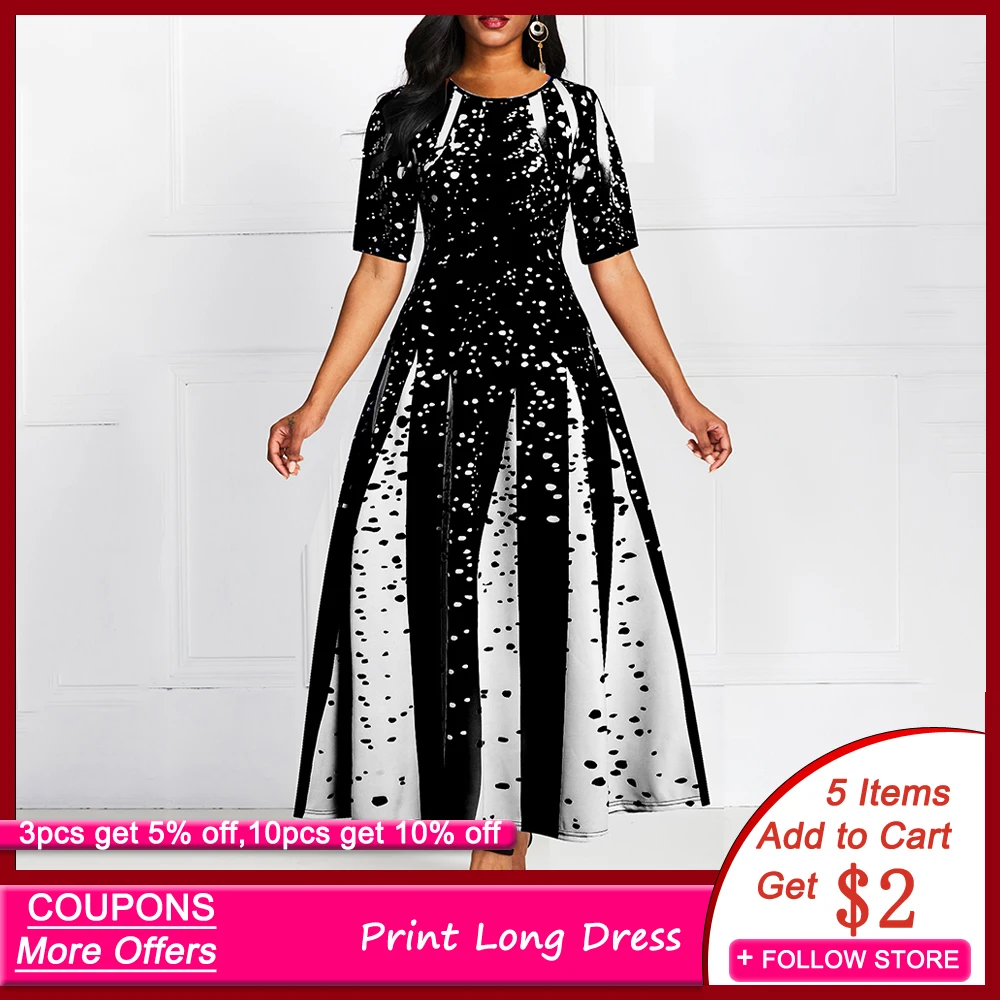 XL-5XL 2018 Женская одежда с принтом Платья Туника длинная повседневная с круглым вырезом хлопок платье с коротким рукавом до середины икры Боль...