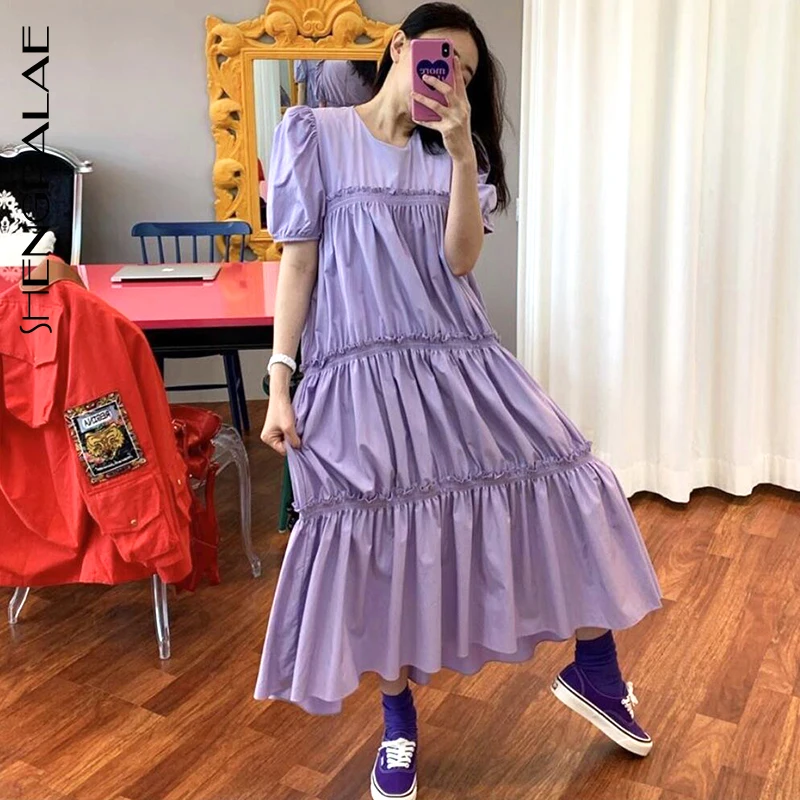 SHENGPALAE/осенне-весеннее 2019 клетчатое платье с рукавами-фонариками, до середины икры, с круглым вырезом, свободное женское платье в Корейском с...