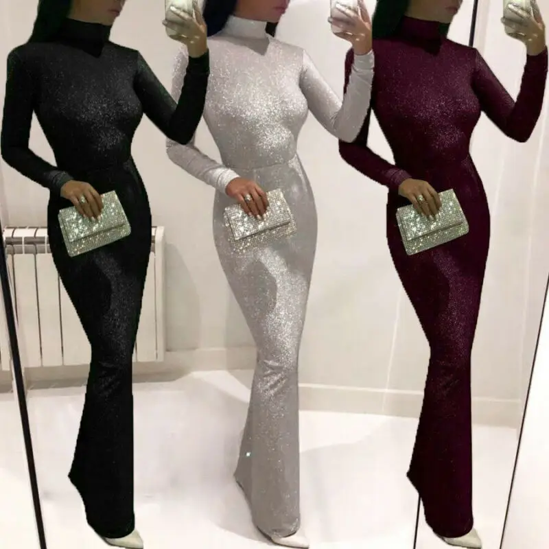 Женское сексуальное платье, элегантное, водолазка, блестящее, для банкета, выпускного, свадьбы, вечеринки, рыбий хвост, облегающее, облегающее, длинное, облегающее, макси платье