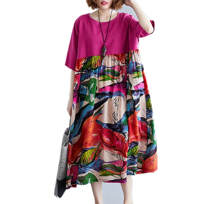 Женское Свободное длинное платье Uego, Повседневное платье из хлопка и льна с цветочным принтом, большие размеры 5XL 6XL