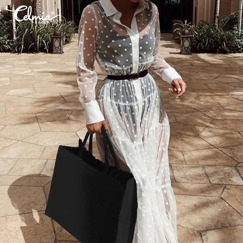 Женское пляжное платье Celmia, прозрачное кружевное платье в горошек для лета 2020 размера плюс