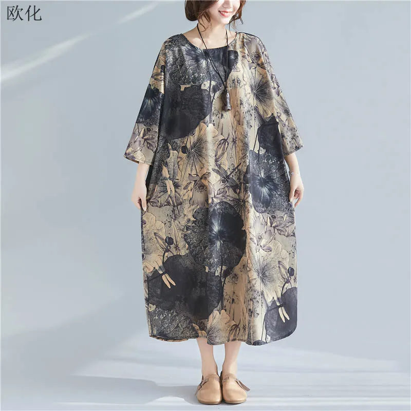 Винтажное сатиновое платье макси с принтом размера плюс 4XL 5XL 6XL винтажное богемное платье для женщин Летнее свободное Хлопковое платье с дл...