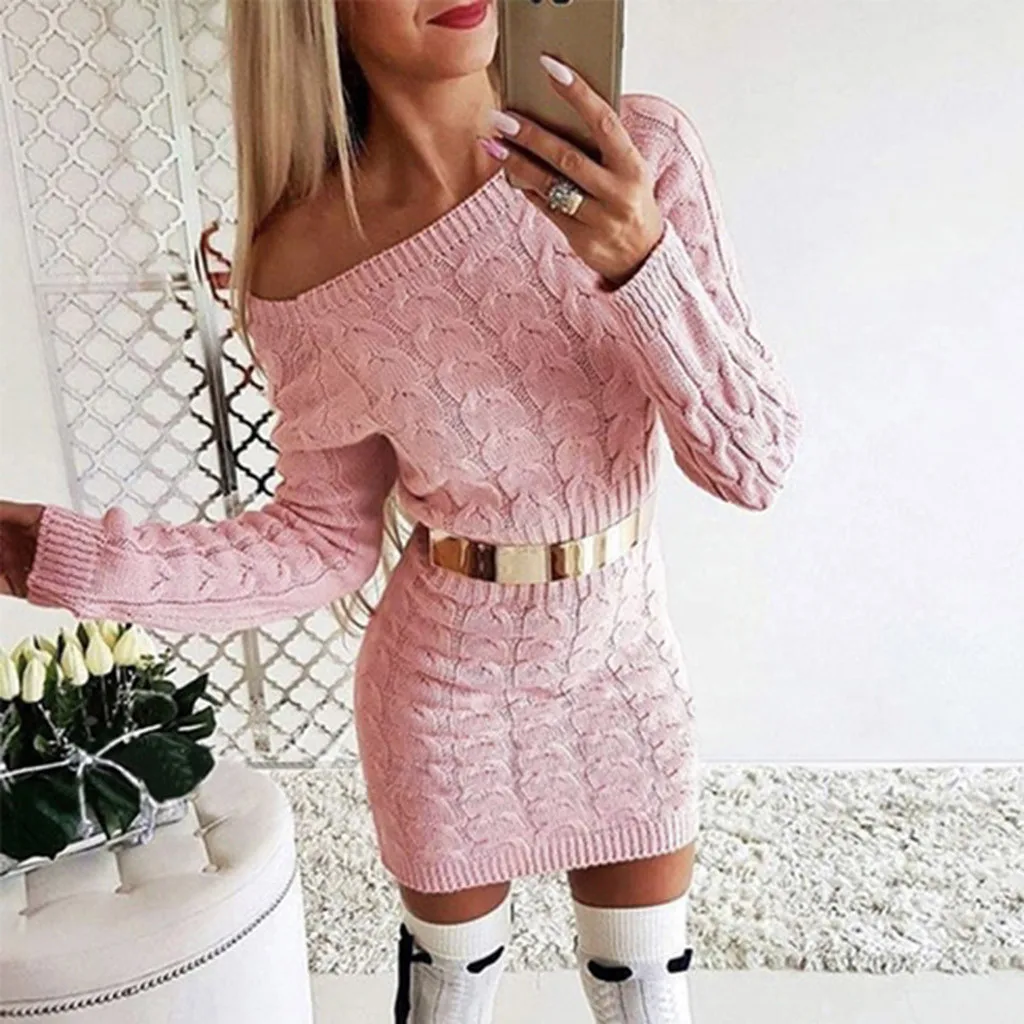 Модное женское Облегающее вязаное платье, тонкое сексуальное вязаное крючком повседневное мини-платье, женское элегантное плотное зимнее ...