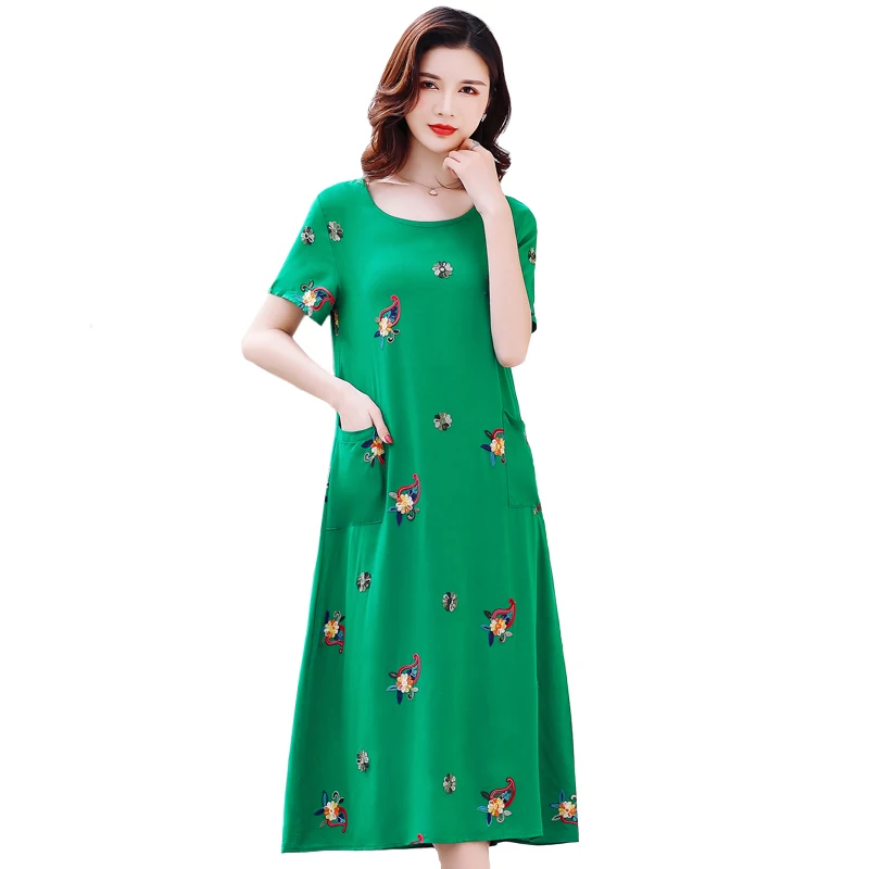 Новые женские летние платья элегантные 2020 новые винтажные платья с вышивкой и карманами повседневные трапециевидные Платья с коротким рукавом больших размеров
