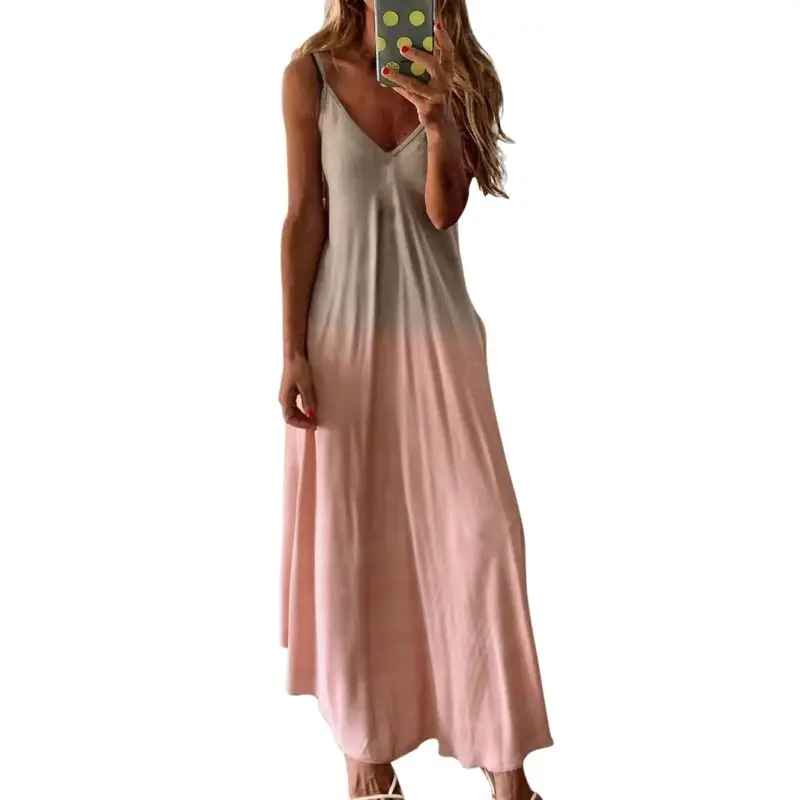 Новое Женское Платье из полиэстера, повседневное свободное сексуальное платье с v-образным вырезом, градиентное длинное приталенное женское платье