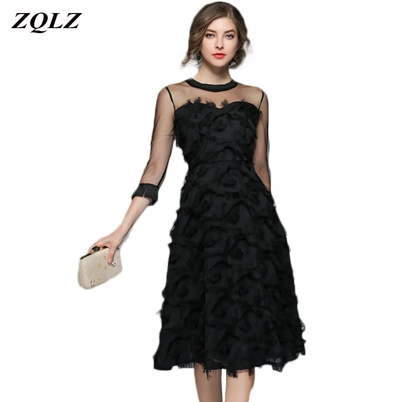Zqlz модные сетчатые лоскутное кисточкой Вечеринка платья для женщин для сезон: весна-лето О образным вырезом Bodycon спинки Винтаж