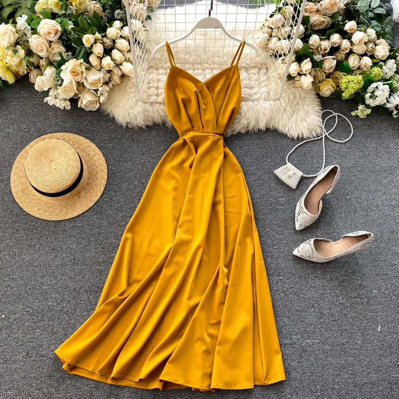 Винтажное платье на бретельках с v-образным вырезом 2020, Летнее Длинное платье средней длины для вечеринки, женское повседневное драпированное платье трапециевидной формы, Пляжное праздничное элегантное платье