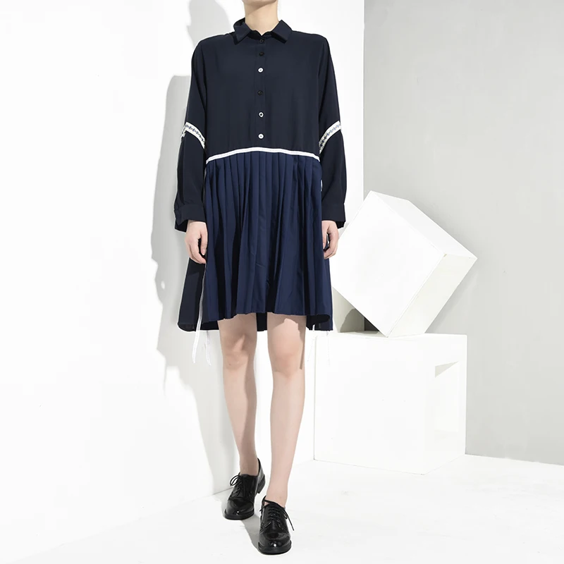 2019 DEAT 2019 Новый отложной воротник Однобортный Темно-синие Однобортный плиссированная рубашка Dreses S-XL женский WF93517XL