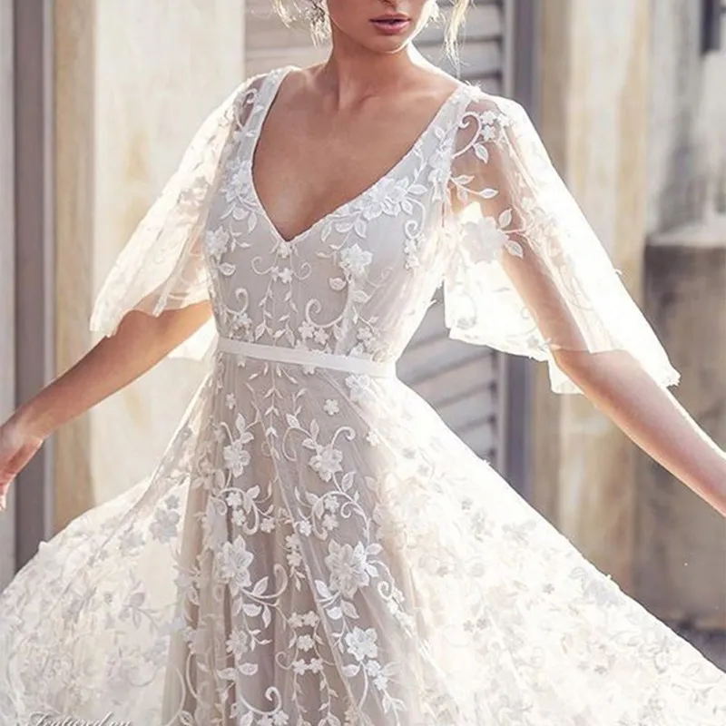 Кружевное Цветочное платье с вышивкой с открытыми плечами прозрачное Длинное Макси платье средней длины с коротким рукавом