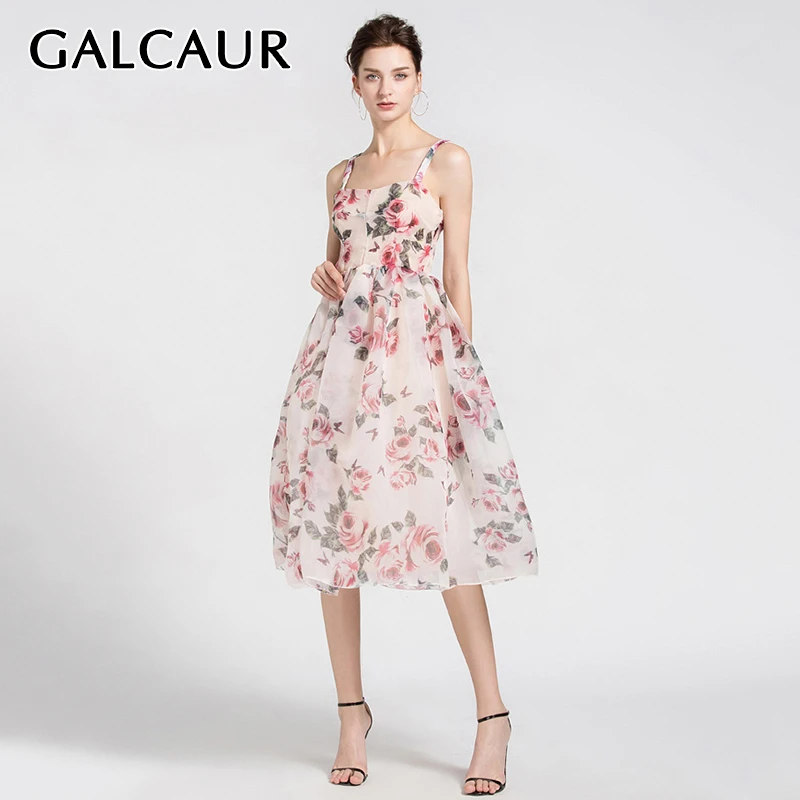 Женское платье с цветочным принтом GALCAUR, летнее платье средней длины без рукавов на бретельках с открытой спиной и высокой талией, милая одежда 2020
