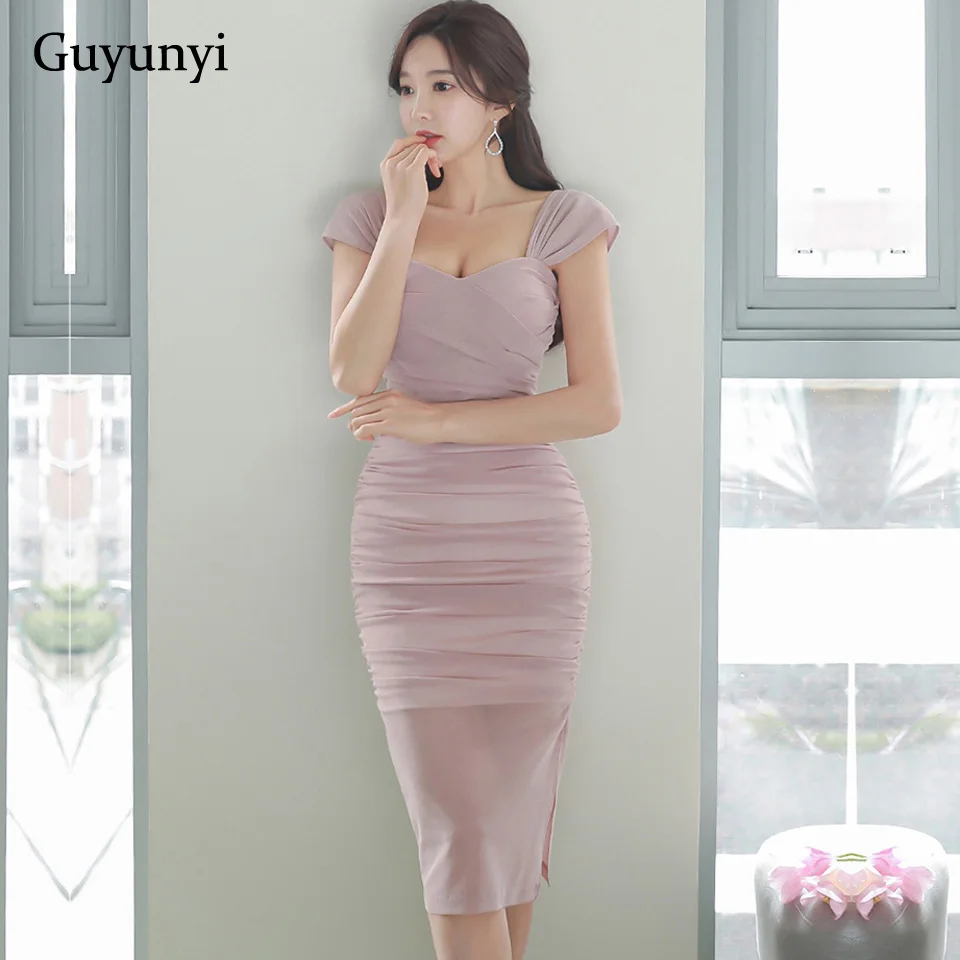 Женское офисное платье розового цвета в Корейском стиле с высокой талией, Простые Вечерние платья с квадратным воротником, лето 2020