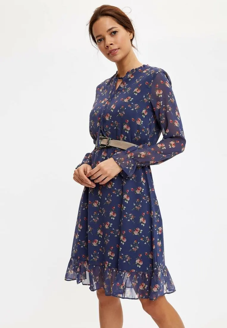 Корейское женское платье с принтом Bohe, Повседневное платье с длинными рукавами, весна-осень, богемное женское платье на пуговицах, воротник-...