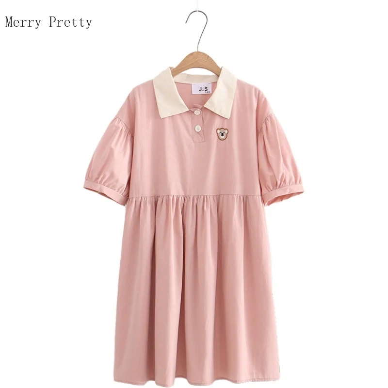 2020 женское летнее плиссированное платье, модное мультяшное платье с вышивкой, коротким рукавом, отложным воротником, свободное мини-платье, женские хлопковые платья