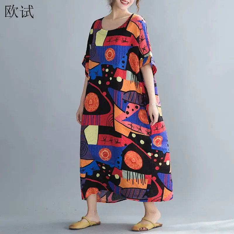 Большие размеры, хлопковое льняное повседневное летнее платье, женское пляжное платье с цветочным рисунком 2020, длинное платье большого размера 4XL 5XL 6XL, Robe Femme