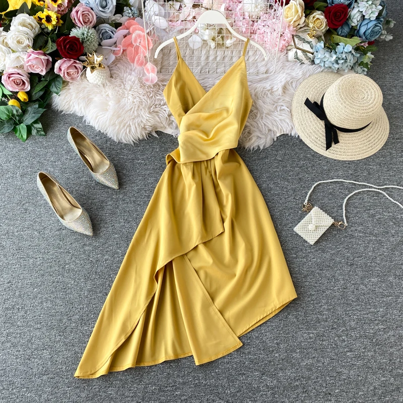 Женское асимметричное платье с v-образным вырезом NiceMix, повседневное асимметричное летнее платье с оборками, вечерние платья на бретелях, 2020